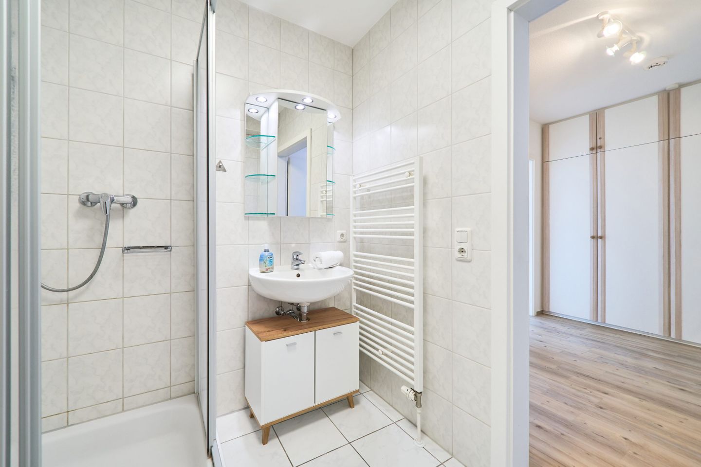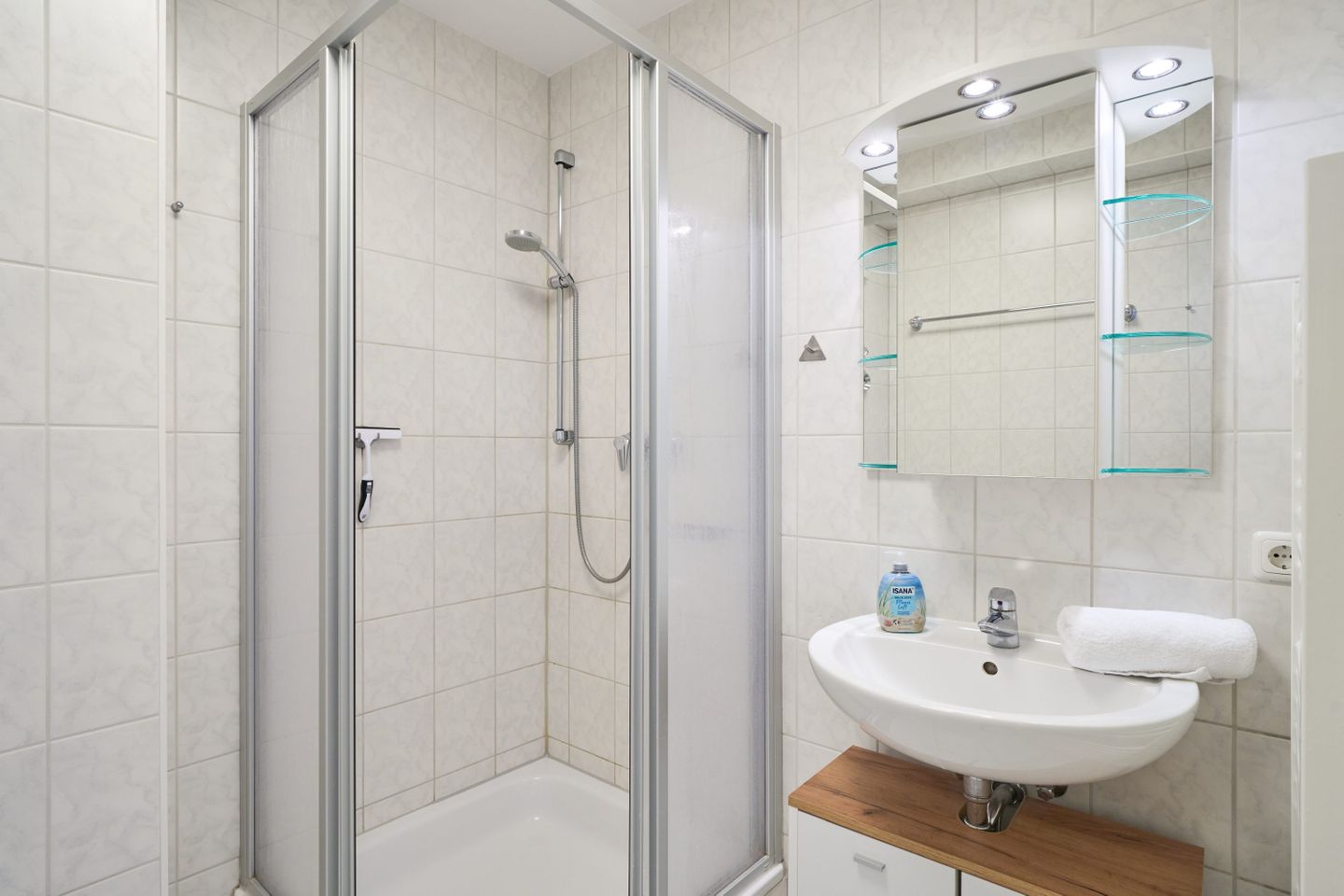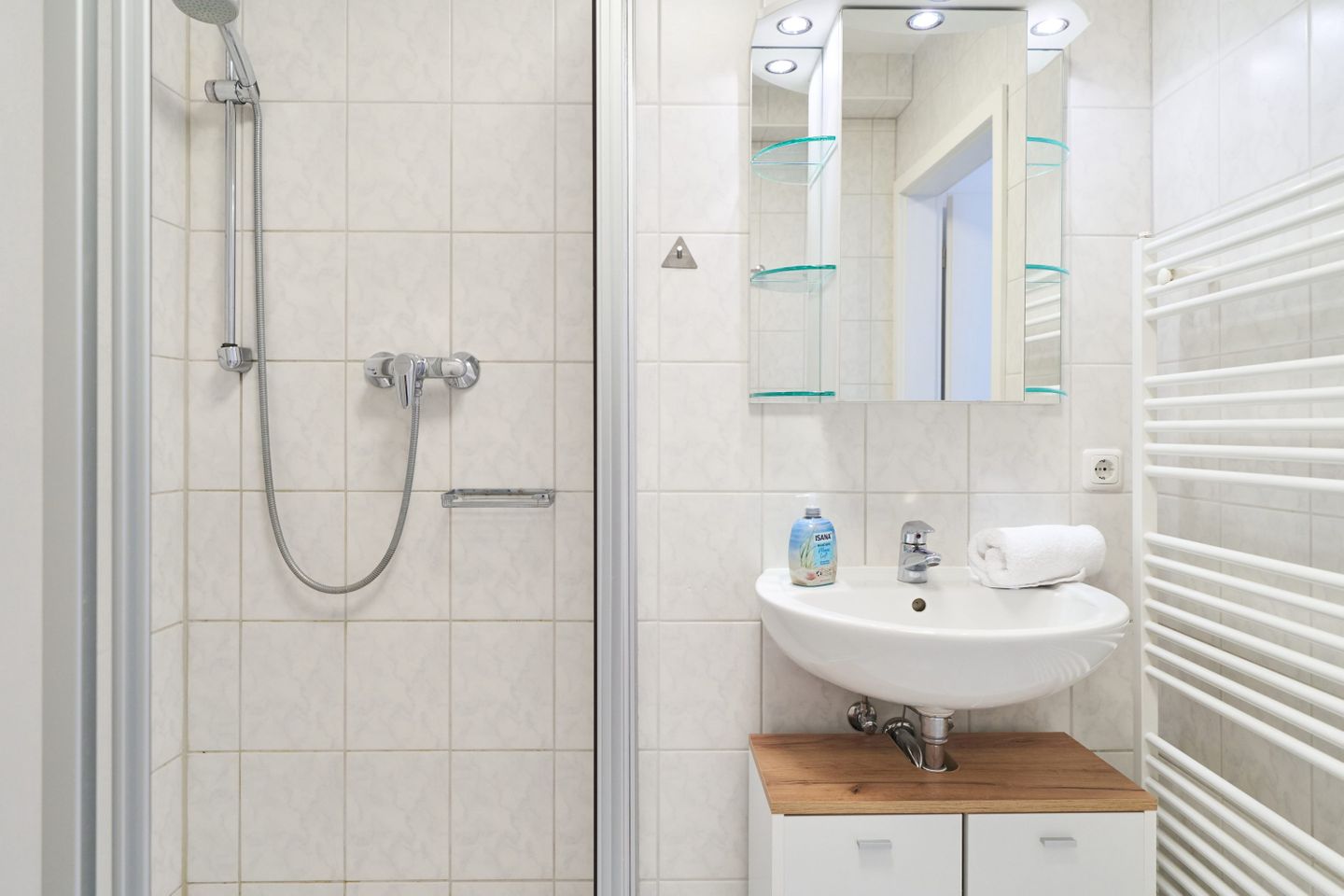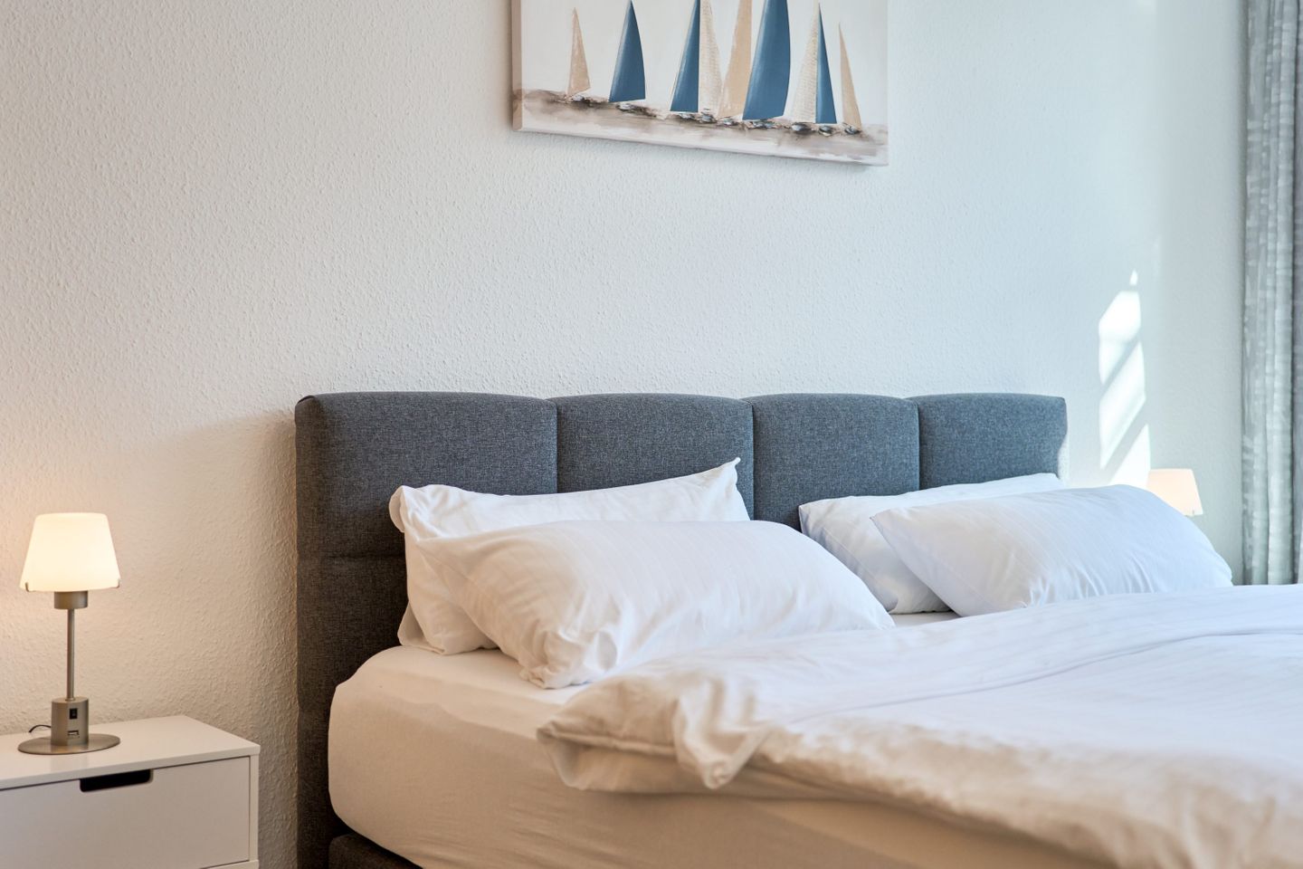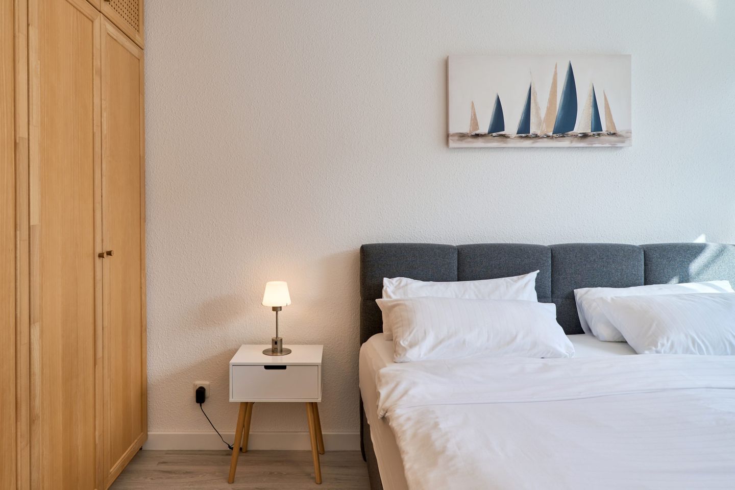 Über den geräumigen Flur gelangen Sie ins Schlafzimmer, das mit einem komfortablen Boxspringbett (2 x 90cm x 200 cm) ausgestattet ist. Das Badezimmer verfügt über eine Dusche, einen Handtuchtrockner und einen Fön. Im gesamten Appartement steht Ihnen kostenfreies WLAN zur Verfügung. Zudem gibt es im Gemeinschaftsraum im Keller eine Münzwaschmaschine und einen Trockner. Ihr Auto können Sie bequem auf dem für Sie reservierten Außenstellplatz am Haus abstellen. Bitte beachten Sie, dass es sich um ein Nichtraucher-Apartment handelt und Haustiere nicht erlaubt sind.
