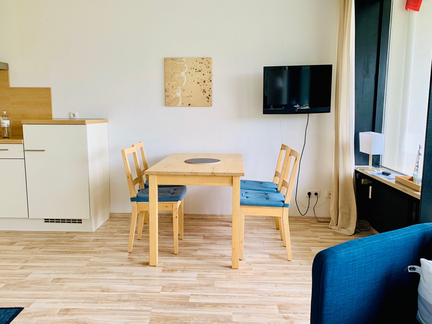 Die Ferienwohnung ist geschmackvoll eingerichtet und bietet Platz für bis zu zwei Personen. Das Apartment ist mit einem komfortablen Doppelbett ausgestattet und verfügt über eine angenehme Atmosphäre, die zum Entspannen und Erholen einlädt. Hier finden Sie auch einen gemütlichen Essbereich und eine moderne voll ausgestattet Küchenzeile, in der Sie Ihre Mahlzeiten zubereiten können.
