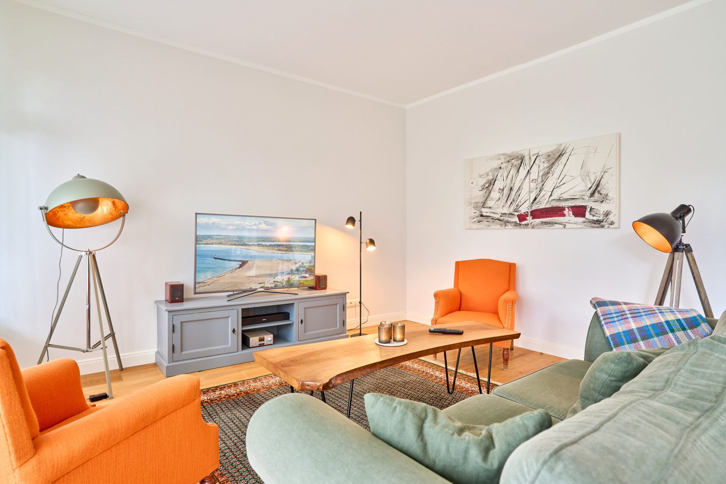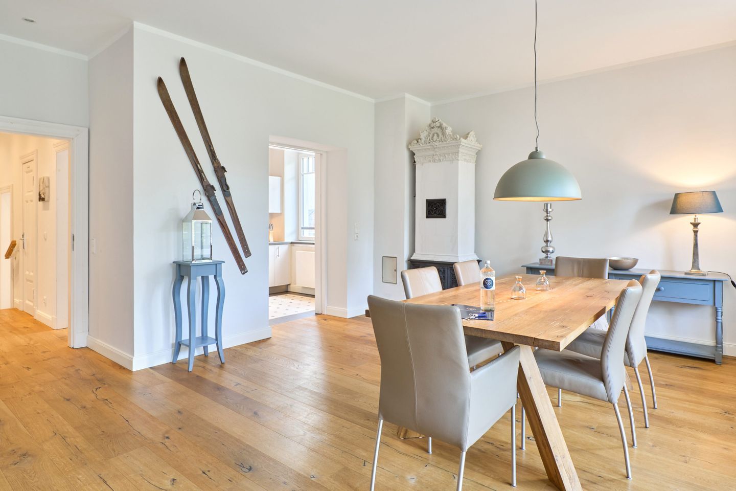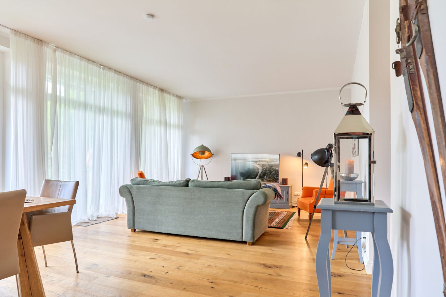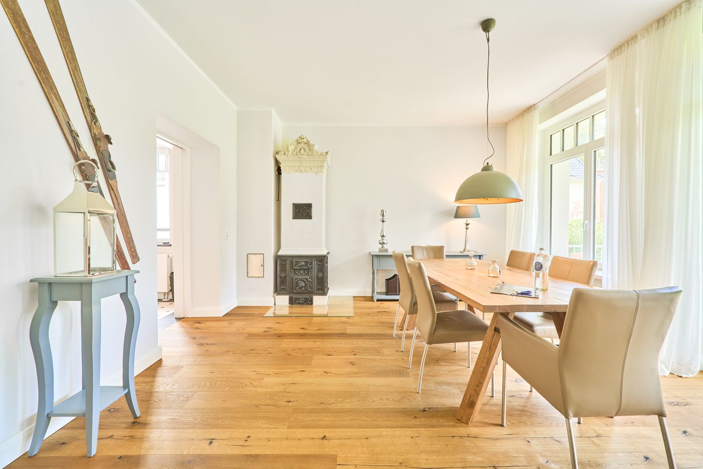 Villa Daheim Travemünde – Luxus pur in der Kaiserallee 35. Auf 105 m² bietet die Ferienwohnung Villa Daheim alles, was man sich für einen entspannten Urlaub an der Ostsee wünscht. Die luxuriöse Ferienwohnung liegt in der ruhigen zweiten Reihe an der Kaiserallee, nur 50 m vom Ostseestrand entfernt. Das Zentrum von Travemünde ist in etwa 15 Gehminuten über die Promenade erreichbar. Die Wohnung befindet sich in einer stilvollen Bäderstil-Villa, die kürzlich kernsaniert und modern eingerichtet wurde. Mit drei Zimmern, zwei Schlafzimmern, einer großzügigen Veranda und einer voll ausgestatteten Küche bietet die Wohnung Platz für bis zu vier Gäste. Große bodentiefe Fenster im Wohnzimmer sorgen für eine helle Atmosphäre und der Zugang zur sonnigen, südlich ausgerichteten Veranda mit Blick ins Grüne lädt zum Entspannen ein. Ein privater Strandkorb auf der Veranda sowie der Zugang zum Gemeinschaftsgarten sorgen für zusätzliche Erholung. In beiden Schlafzimmern stehen komfortable Boxspring-Doppelbetten und ausreichend Stauraum in den Kleiderschränken zur Verfügung. Das Badezimmer bietet eine Badewanne, Dusche und WC. Eine Waschmaschine zur freien Nutzung befindet sich im Waschkeller. Für Unterhaltung sorgen ein großer LED-TV mit Kabelanschluss im Wohnzimmer, ein weiterer TV im Schlafzimmer sowie eine Stereoanlage mit Radio und CD-Funktion. Die geschmackvolle und moderne Einrichtung auf 105 m² lässt keine Wünsche offen. Für Ihren Komfort ist ein privater Stellplatz direkt vor dem Haus vorhanden, und Ihre Fahrräder können sicher und trocken im eigenen Fahrradschuppen untergebracht werden. Villa Daheim in Travemünde bietet Luxus, modernes Ambiente und Altbaucharme in strandnaher Lage an der Kaiserallee und ist die perfekte Unterkunft für einen unvergesslichen Ostseeurlaub.