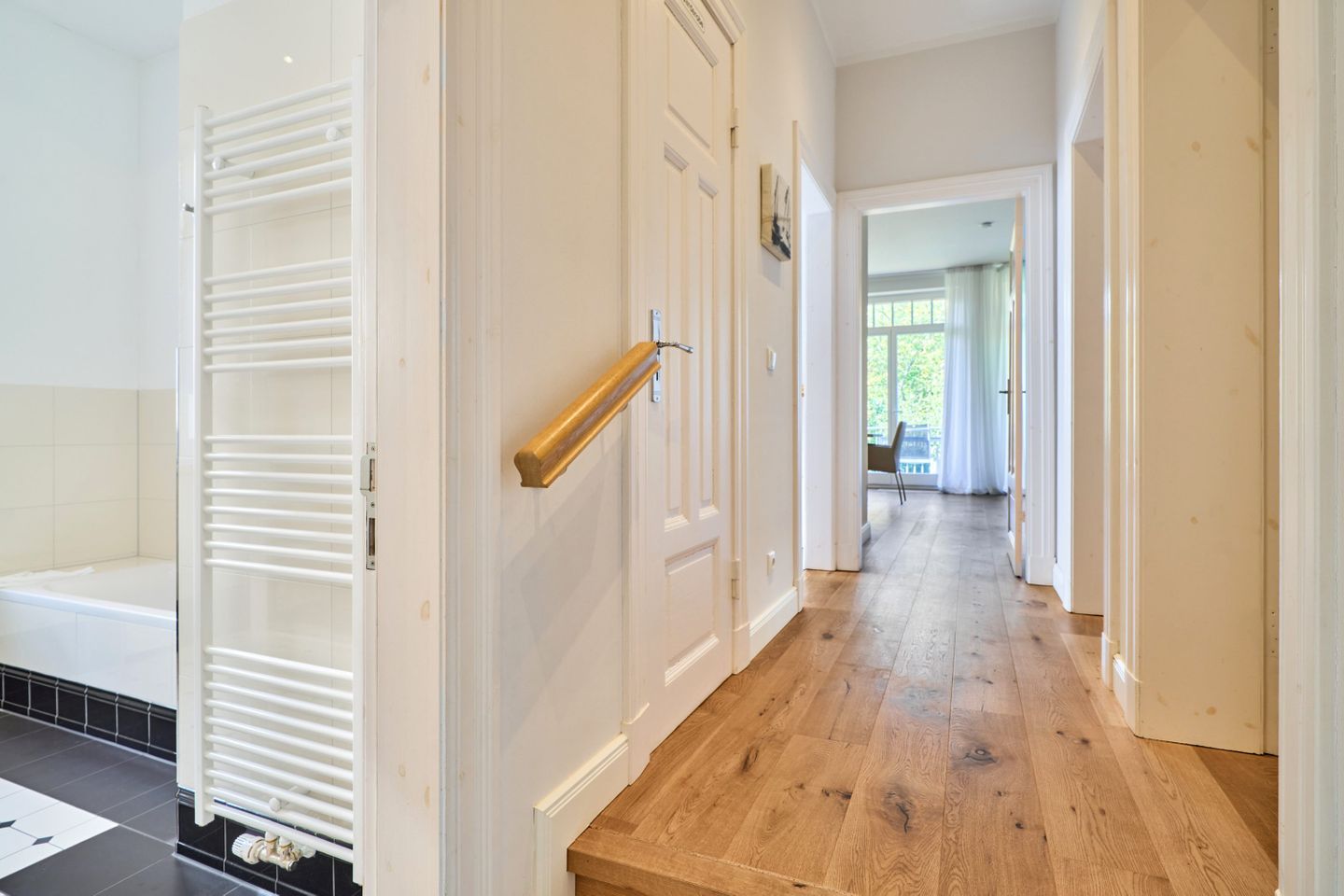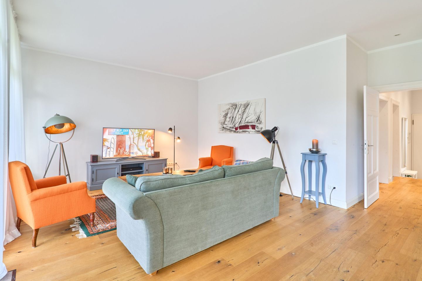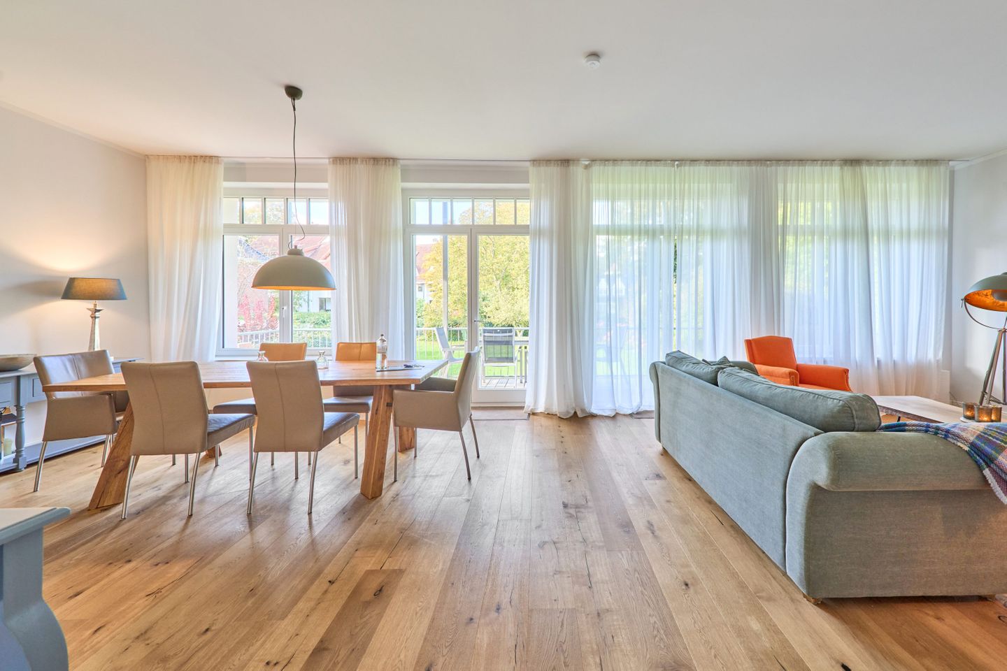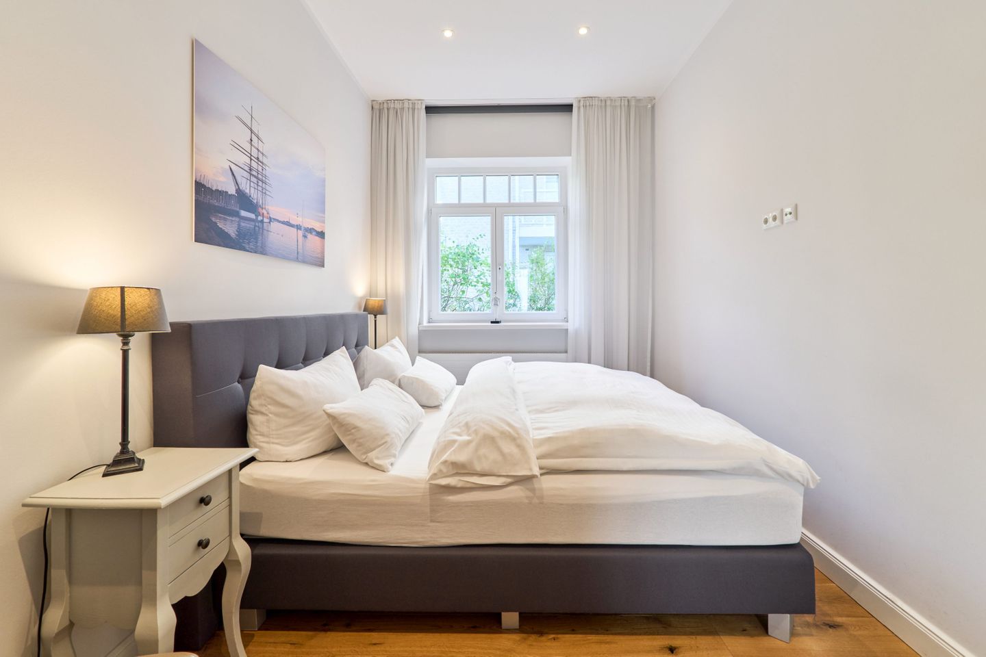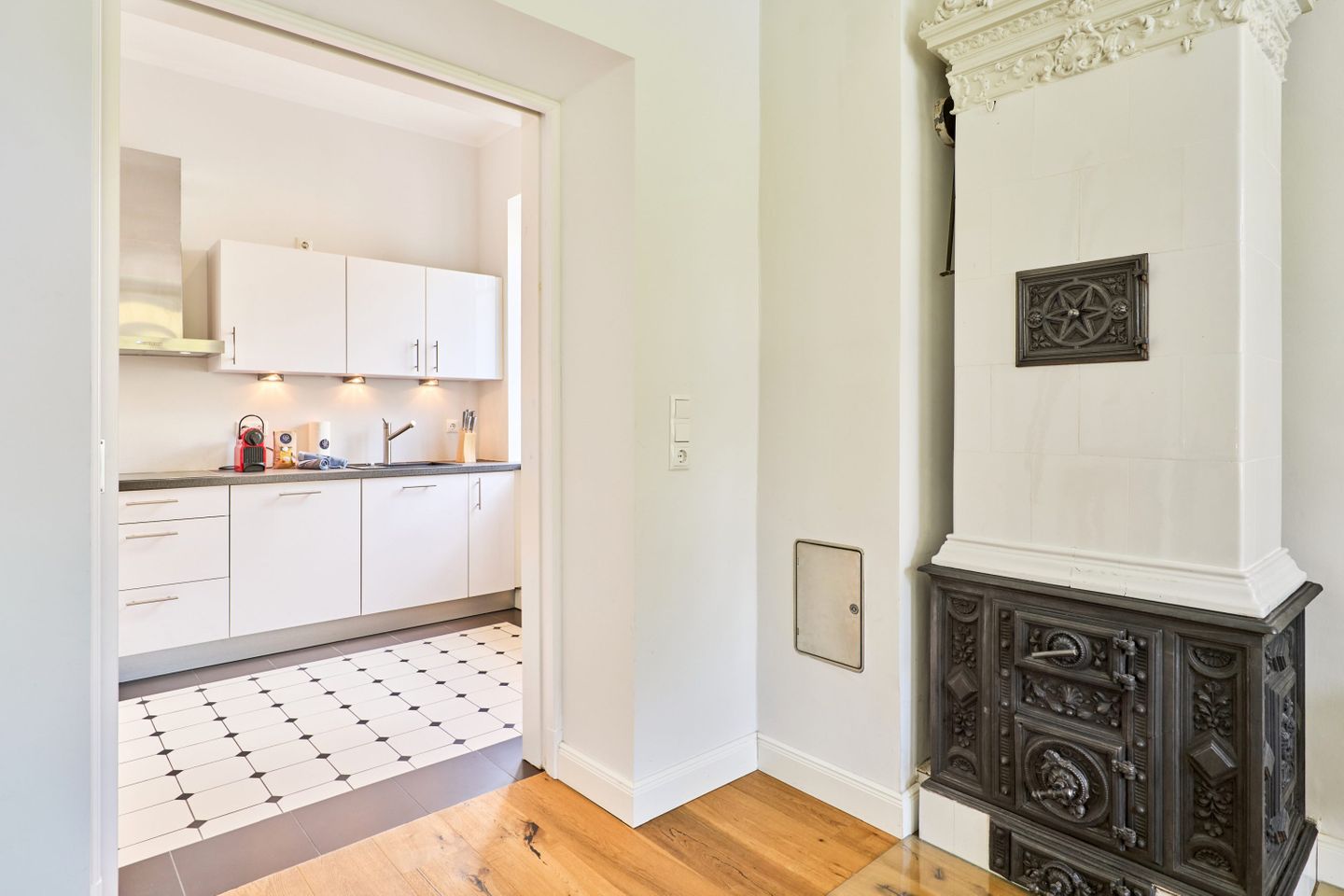 Villa Daheim Travemünde – Luxus pur in der Kaiserallee 35. Auf 105 m² bietet die Ferienwohnung Villa Daheim alles, was man sich für einen entspannten Urlaub an der Ostsee wünscht. Die luxuriöse Ferienwohnung liegt in der ruhigen zweiten Reihe an der Kaiserallee, nur 50 m vom Ostseestrand entfernt. Das Zentrum von Travemünde ist in etwa 15 Gehminuten über die Promenade erreichbar. Die Wohnung befindet sich in einer stilvollen Bäderstil-Villa, die kürzlich kernsaniert und modern eingerichtet wurde. Mit drei Zimmern, zwei Schlafzimmern, einer großzügigen Veranda und einer voll ausgestatteten Küche bietet die Wohnung Platz für bis zu vier Gäste. Große bodentiefe Fenster im Wohnzimmer sorgen für eine helle Atmosphäre und der Zugang zur sonnigen, südlich ausgerichteten Veranda mit Blick ins Grüne lädt zum Entspannen ein. Ein privater Strandkorb auf der Veranda sowie der Zugang zum Gemeinschaftsgarten sorgen für zusätzliche Erholung. In beiden Schlafzimmern stehen komfortable Boxspring-Doppelbetten und ausreichend Stauraum in den Kleiderschränken zur Verfügung. Das Badezimmer bietet eine Badewanne, Dusche und WC. Eine Waschmaschine zur freien Nutzung befindet sich im Waschkeller. Für Unterhaltung sorgen ein großer LED-TV mit Kabelanschluss im Wohnzimmer, ein weiterer TV im Schlafzimmer sowie eine Stereoanlage mit Radio und CD-Funktion. Die geschmackvolle und moderne Einrichtung auf 105 m² lässt keine Wünsche offen. Für Ihren Komfort ist ein privater Stellplatz direkt vor dem Haus vorhanden, und Ihre Fahrräder können sicher und trocken im eigenen Fahrradschuppen untergebracht werden. Villa Daheim in Travemünde bietet Luxus, modernes Ambiente und Altbaucharme in strandnaher Lage an der Kaiserallee und ist die perfekte Unterkunft für einen unvergesslichen Ostseeurlaub.