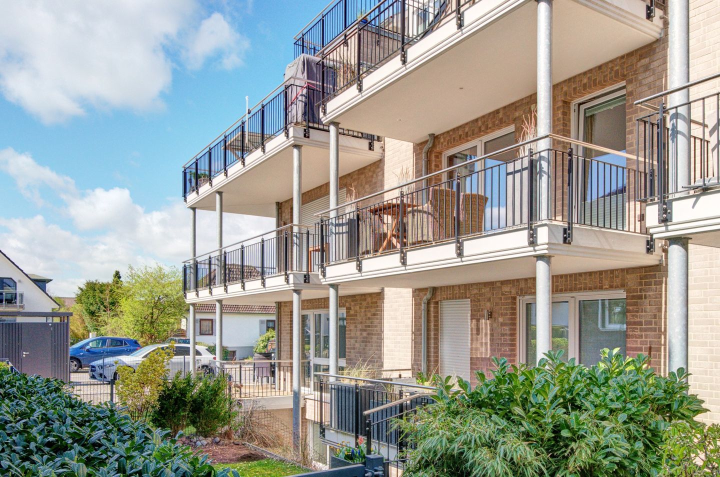 Ihre Fahrräder bringen Sie in einem zur Wohnanlage gehörenden Fahrradschuppen unter und Ihr Auto stellen Sie auf Außenstellplätzen am Haus ab.