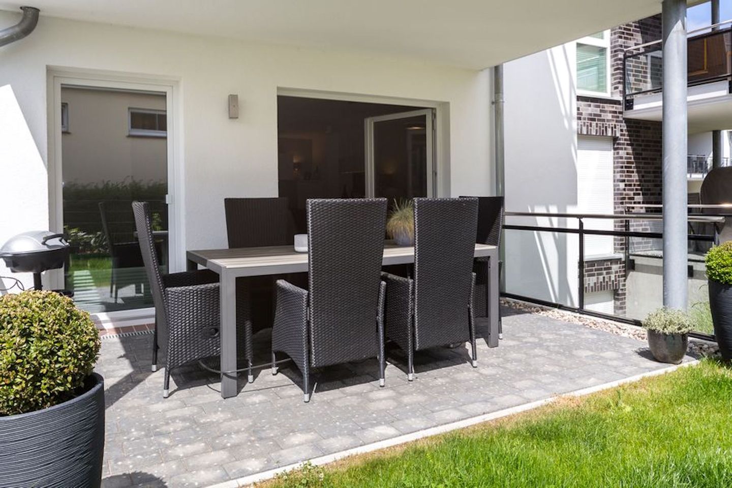 Der große Esstisch lädt zu gemütlichen Abenden mit der ganzen Familie ein. Auf der Sonnenterasse steht Ihnen ebenfalls ein großer Tisch zur Verfügung und nach einem aufregenden Strandtag können Sie den Gas-Grill anheizen. Sie werden sich wohl fühlen.