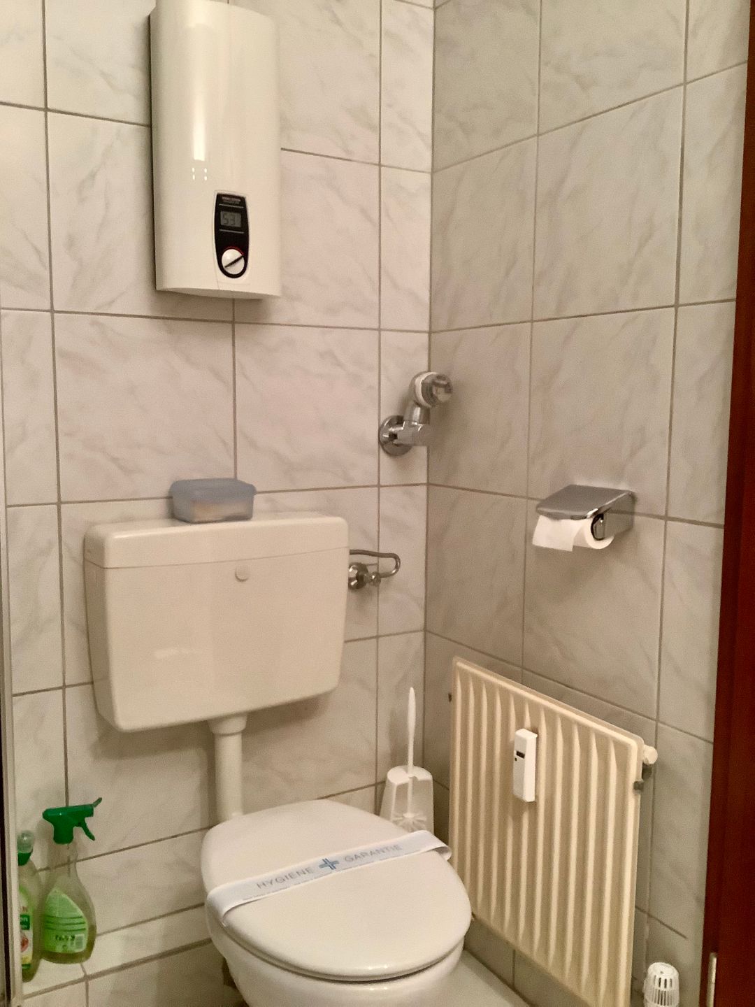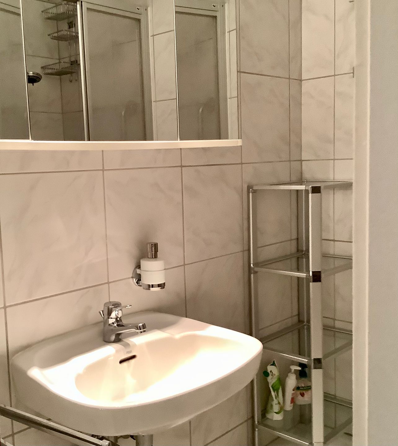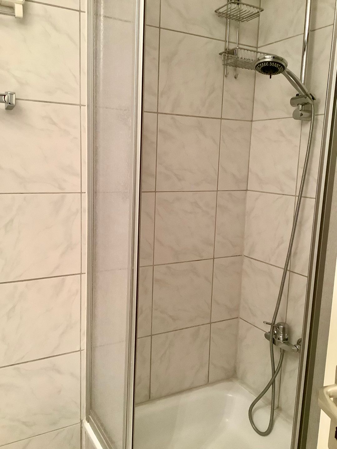 Das moderne Duschbad ist mit Dusche, Waschtisch, WC und Föhn ausgestattet.