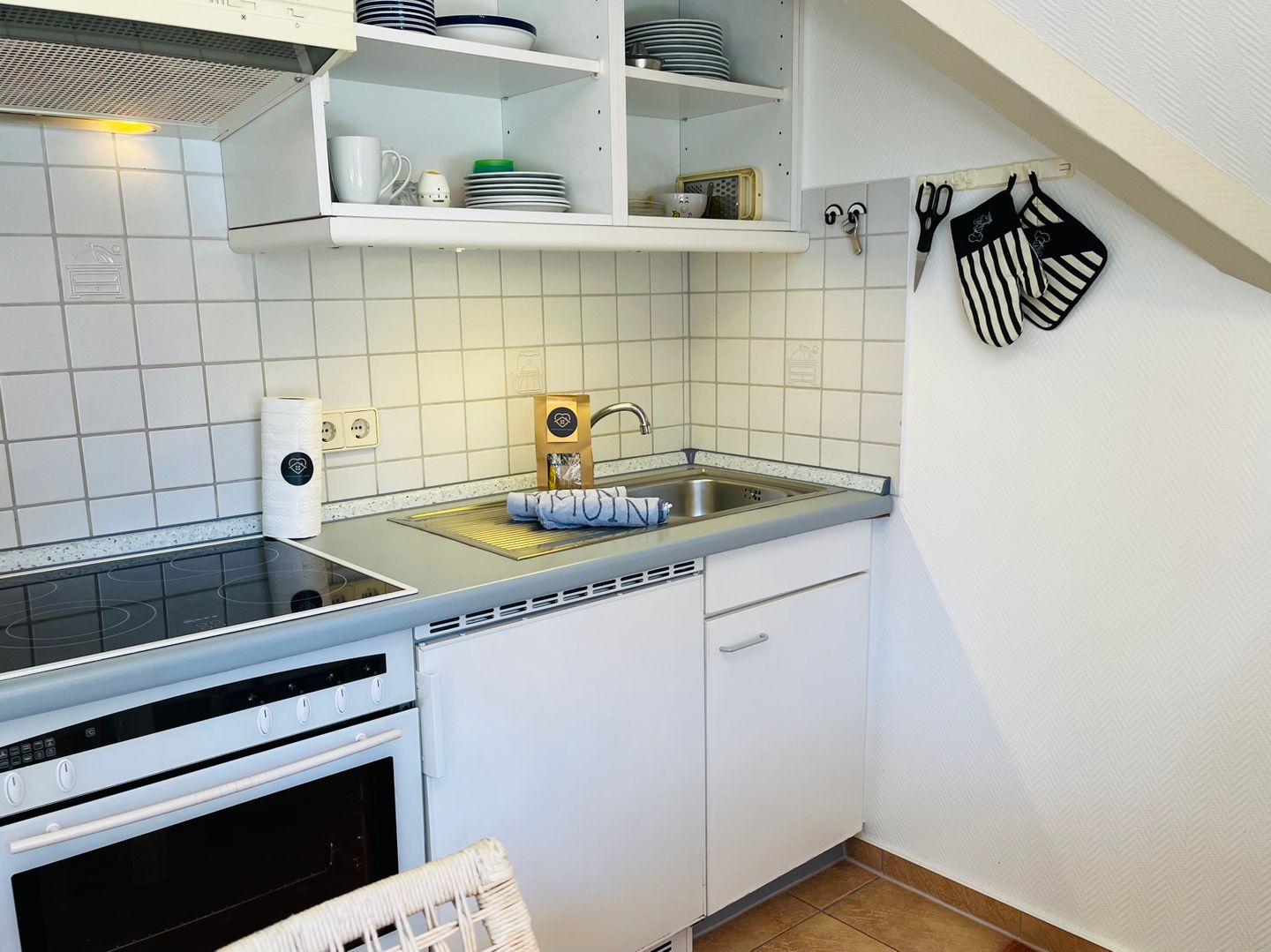 Die voll ausgestattete Küche verfügt über alle notwendigen Annehmlichkeiten, um köstliche Mahlzeiten zuzubereiten. Der Esstisch bietet Platz für vier Personen, sodass Sie Ihre Mahlzeiten bequem genießen können.