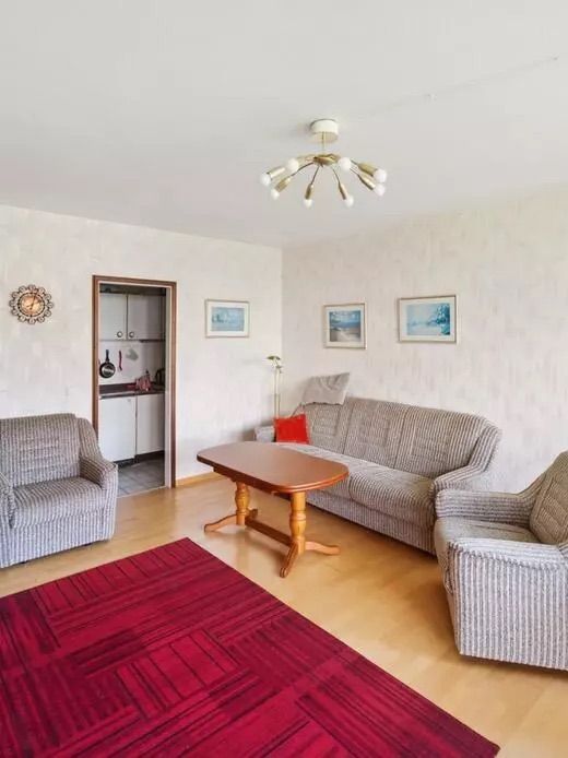 Treten Sie ein in einen offenen Wohnbereich, der mit zeitgenössischen Möbeln und warmen Akzenten gestaltet ist. Die voll ausgestattete Küche lädt dazu ein, köstliche Mahlzeiten zuzubereiten, die Sie am Esstisch für vier Personen genießen können. Die großen Fenster lassen das Tageslicht herein und bieten einen herrlichen Blick auf die umliegende Natur.