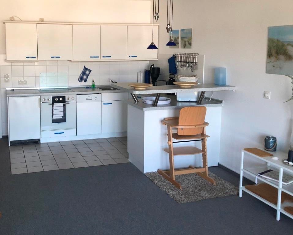 Die helle, komplett eingerichtete Küchenzeile mit angebautem Tresen bietet Ihnen alles, was Sie für einen tollen Urlaub benötigen. Neben Kühlschrank mit Gefrierfach, Backofen, Elektroherd mit Ceranfeld und Dunstabzugshaube, Geschirrspüler, Mikrowelle, Kaffeemaschine, Wasserkocher und Toaster gibt es auch einen elektrischen Grill, einen Eierkocher, ein Waffeleisen und Sandwichmaker, eine Küchenwaage, Backformen und viele weitere Küchenhelfer. Und selbstverständlich für uns finden Sie bei Ihrer Ankunft die Grundausstattung an vielen weiteren Utensilien vor, wie z.B. Seife, Spülmaschinentabs, Müllbeutel, Küchenrollen, Backpapier.