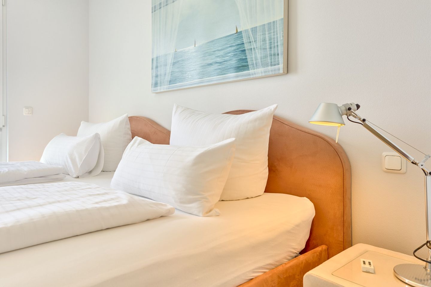Unsere Urlaubsgäste erwarten geschmackvoll eingerichtete, ruhig gelegene Wohnungen mit eigenem Balkon oder eigener Terrasse. Alle Fenster lassen sich mit Außenrollläden angenehm verdunkeln. Die oberen Stockwerke erreichen Sie bequem mit dem Fahrstuhl. Ein PKW-Stellplatz im Außenbereich oder in der Tiefgarage ist für Sie reserviert.