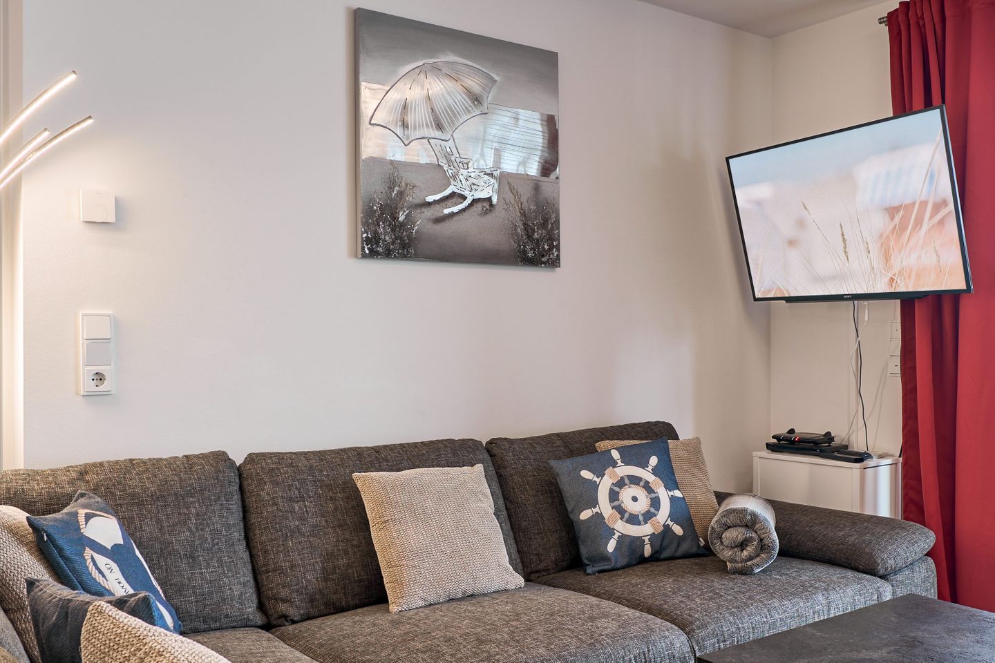 Beim Betreten des Apartments erwartet Sie eine stilvolle und gemütliche Atmosphäre. Das Herzstück ist das komfortable Schlafzimmer, das mit einem hochwertigen Joop Boxspringbett ausgestattet ist und Ihnen erholsame Nächte garantiert. Auch nach einem erlebnisreichen Tag am Strand oder einer langen Wanderung entlang der Küste können Sie hier wunderbar zur Ruhe kommen.