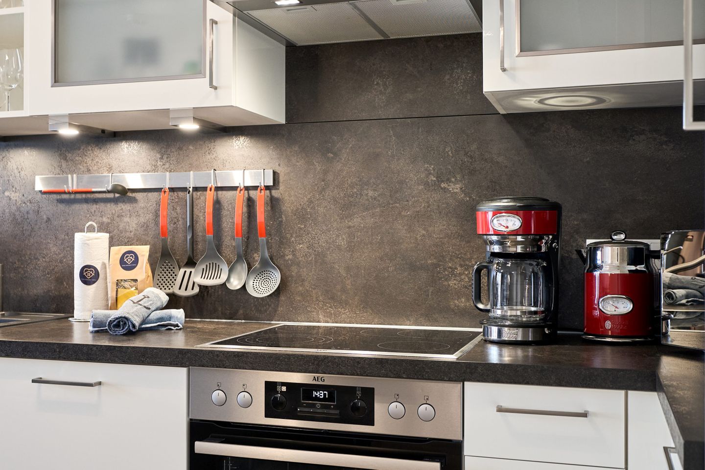 In der modernen, voll ausgestatteten Küche können Sie Ihre Lieblingsgerichte zubereiten. Sie verfügt über hochwertige Geräte wie eine Spülmaschine, Kaffeemaschine, Mikrowelle und einen Herd mit Cerankochfeld. Auch an Küchenutensilien, Geschirr und Besteck ist alles vorhanden, sodass Sie sich wie zuhause fühlen können. Ob ein ausgiebiges Frühstück oder ein gemütliches Abendessen – hier wird das Kochen zum Vergnügen.