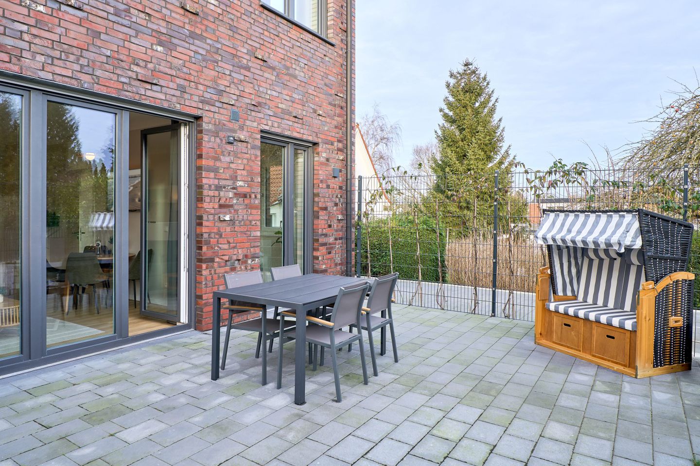Die sonnige Terrasse und der kleine Gartenbereich laden zum Verweilen ein. Macht es Euch im Strandkorb bequem und genießt ein kaltes Getränk. Ein Weber-Elektrogrill sowie komfortable Sitzgelegenheiten machen den Außenbereich ideal für entspannte Grillabende.