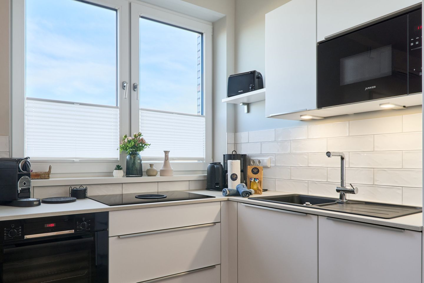 Alle Wohnungen im Saltwater House sind mit voll ausgestatteten Küchen versehen, die keine Wünsche offenlassen. Von hochwertigen Geräten bis hin zu allen nötigen Küchenutensilien ist alles vorhanden, damit Sie Ihre Lieblingsgerichte bequem zubereiten können. Bequeme Boxspringbetten in den Schlafzimmern sorgen für erholsame Nächte und hohen Schlafkomfort, sodass Sie erfrischt in den Tag starten.