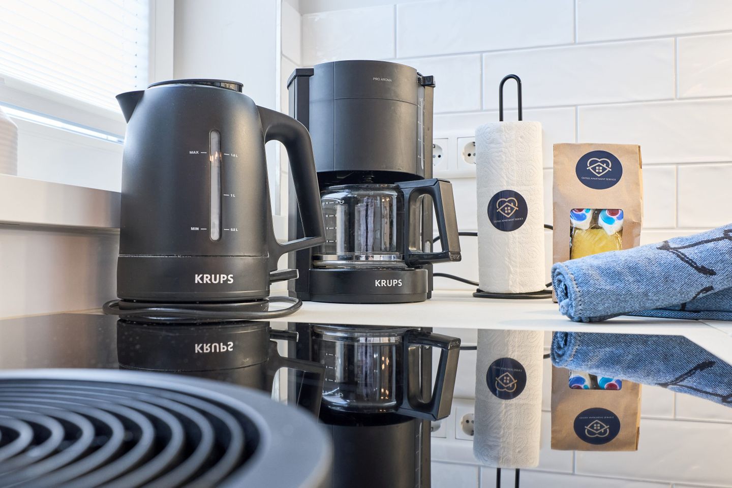 Die exklusive, geschmackvoll modern eingerichtete Ferienwohnung Sail Away bietet auf großzügigen 100 qm Platz für bis zu 8 Personen und ist ideal für Familien und Freundesgruppen, die sich ein hochwertiges Wohnerlebnis wünschen. Der helle Wohnbereich lädt mit einer gemütlichen Schlafcouch (140x200 cm), einem 50-Zoll-Smart-TV und einem großen Essbereich zu entspannten Stunden ein. Die Küche ist bestens ausgestattet, um mit Leichtigkeit leckere Mahlzeiten zu zaubern, darunter eine Nespresso- und eine Filterkaffeemaschine sowie Toaster, Wasserkocher, Mikrowelle und Ofen.