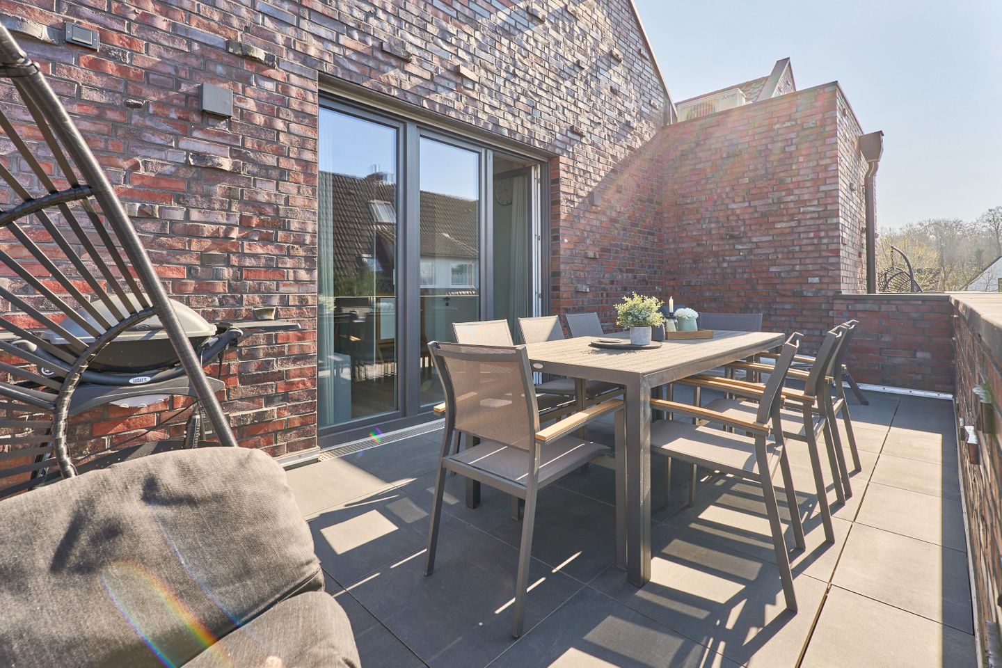 Die Dachterrasse ist ein weiteres Highlight der Wohnung: Hier könnt Ihr in der Abendsonne entspannen und bei einem geselligen Grillabend den hochwertigen Weber-Elektrogrill nutzen. Bequeme Sitzgelegenheiten und ein gemütlicher Hängestuhl bieten reichlich Platz zum Entspannen.