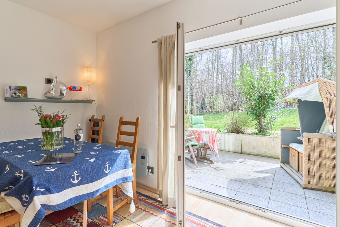 Ein besonderes Highlight der Wohnung ist die sonnige Terrasse, auf der Sie die frische Ostseeluft in vollen Zügen genießen können. Machen Sie es sich im eigenen Strandkorb bequem und lassen Sie den Blick über die Natur schweifen. Hier können Sie bei einem guten Buch entspannen oder den Tag mit einem ausgiebigen Frühstück im Freien beginnen. Das moderne Duschbad sorgt für einen angenehmen Start in den Tag und bietet Ihnen zeitgemäßen Komfort.