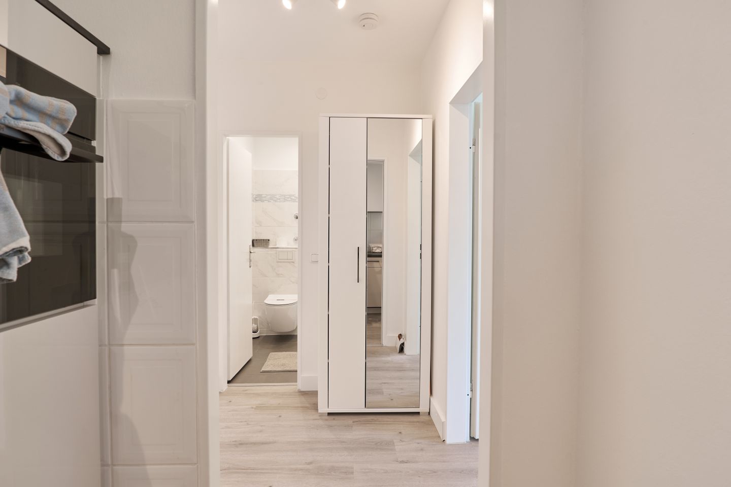 Beim Betreten der Wohnung erwartet Sie ein freundlicher, offener Wohn- und Essbereich, der mit einer neuen, modernen Einbauküche ausgestattet ist. Hier finden Sie alles, was Sie für die Zubereitung Ihrer Mahlzeiten benötigen – von einem Herd mit Backofen über einen Kühlschrank bis hin zu einer Kaffeemaschine. Der angrenzende Essbereich bietet ausreichend Platz für gemütliche Mahlzeiten. Im Wohnbereich lädt eine bequeme Schlafcouch zum Entspannen ein und kann bei Bedarf als zusätzliche Schlafmöglichkeit genutzt werden.