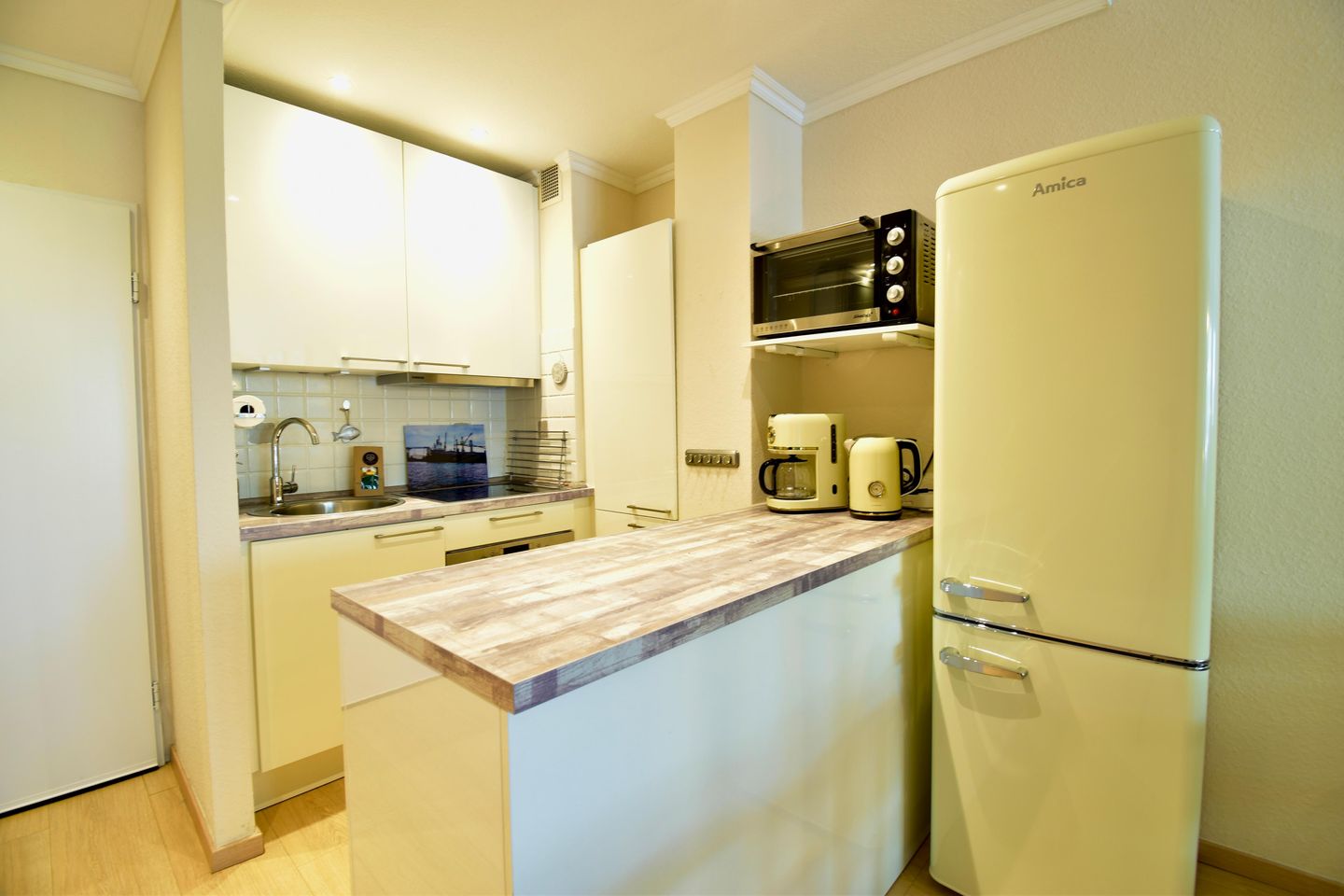 Die moderne, voll ausgestattete Küche bietet alles, was man braucht, um sich auch im Urlaub kulinarisch verwöhnen zu können. Ob ein leichtes Frühstück, ein gemeinsames Kocherlebnis oder ein gemütliches Abendessen – hier fühlt sich jeder Augenblick wertvoll an.