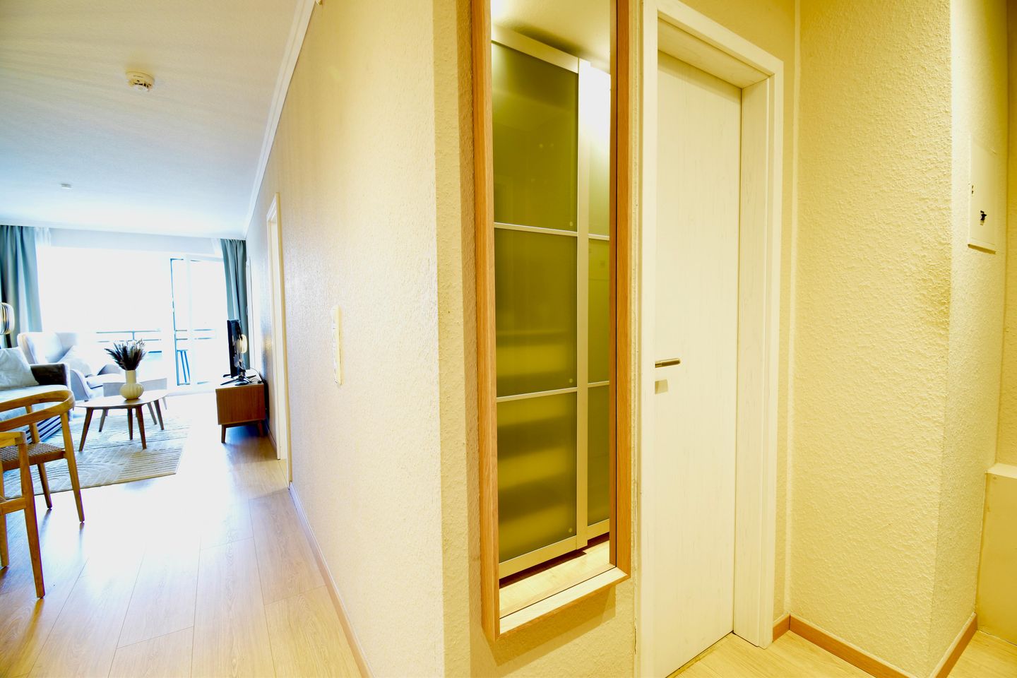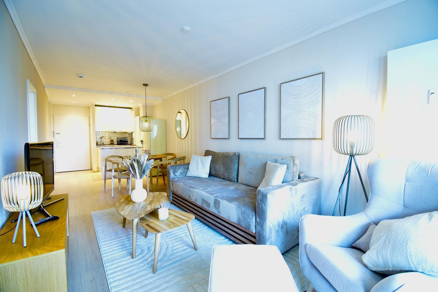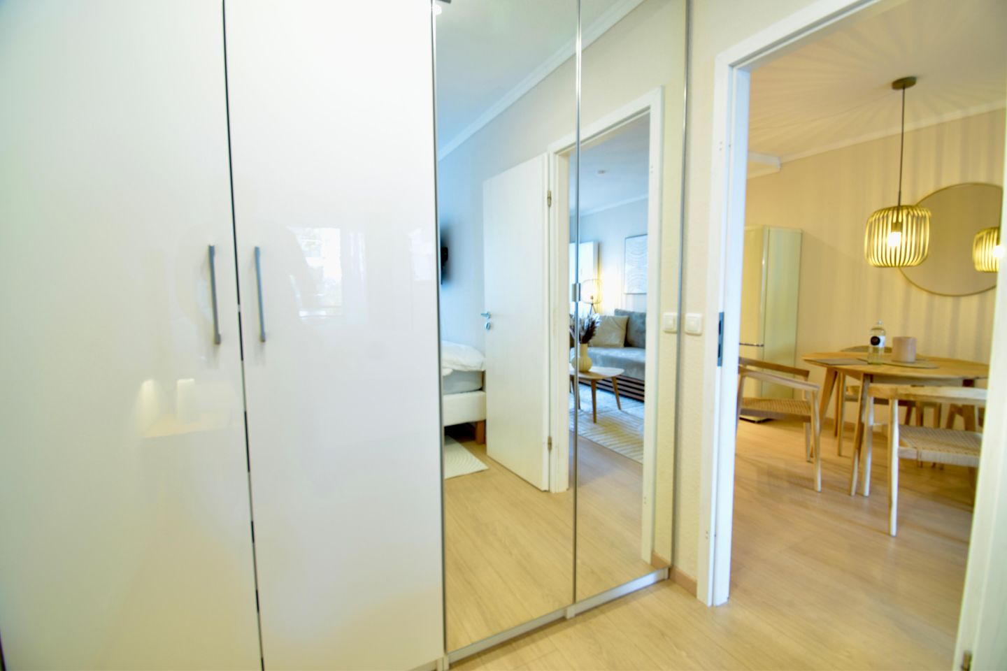 Schon beim Eintreten empfängt Sie eine helle, moderne Wohnatmosphäre, die Wärme und Leichtigkeit ausstrahlt. Die Einrichtung wurde im März 2026 komplett erneuert und mit viel Gefühl für Stil und Komfort gestaltet. Natürliche Farben, hochwertige Materialien und liebevolle Details schaffen ein Wohngefühl, das sofort berührt.