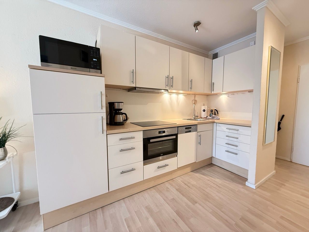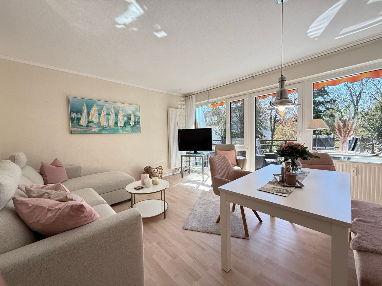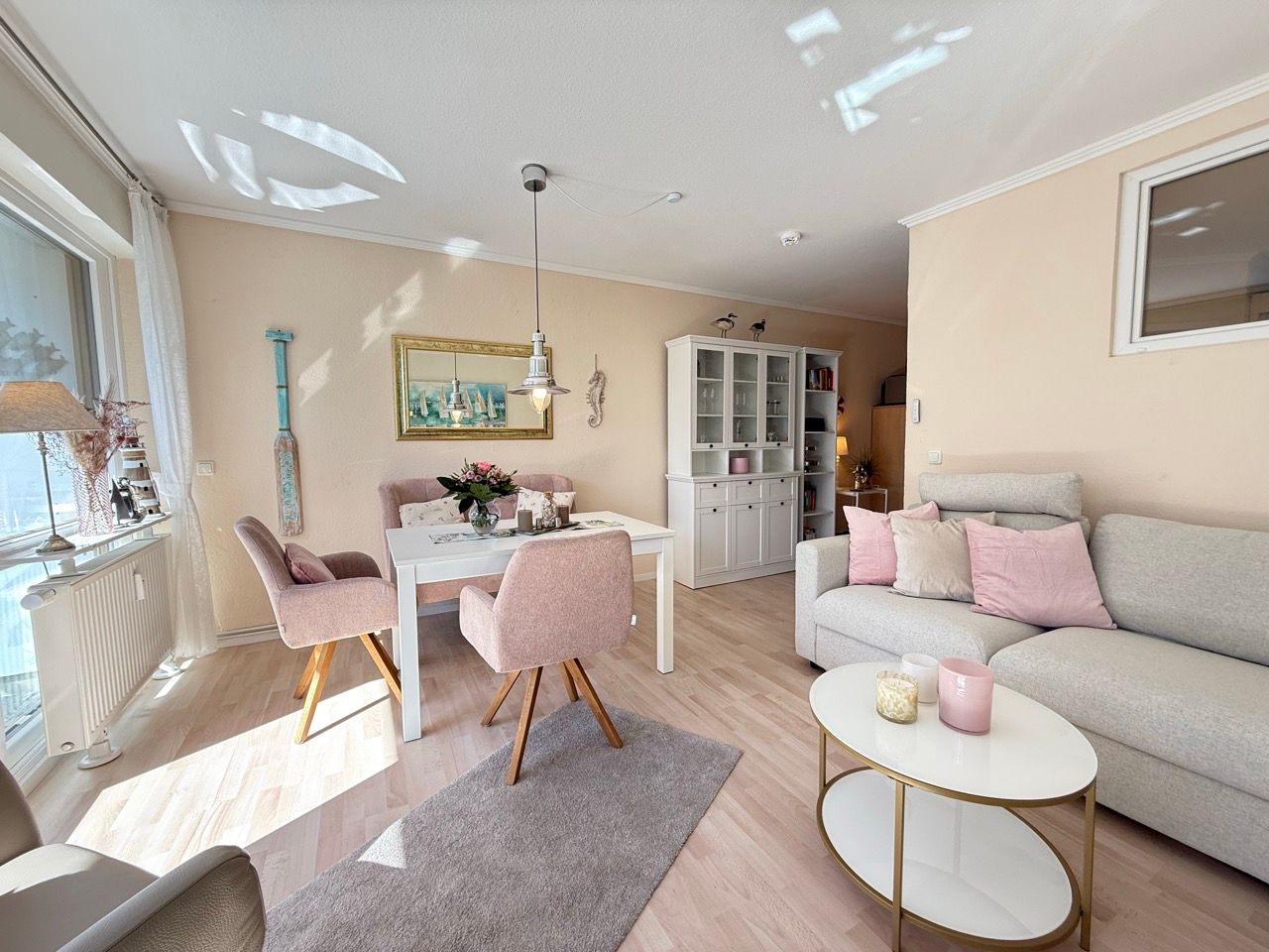 Die modern und geschmackvoll eingerichtete Wohnung empfängt Sie mit einer angenehmen, ruhigen Atmosphäre. Helle Farben, klare Linien und eine liebevolle Einrichtung schaffen ein Wohngefühl, das sofort entspannt – unaufgeregt, stilvoll und wohltuend.