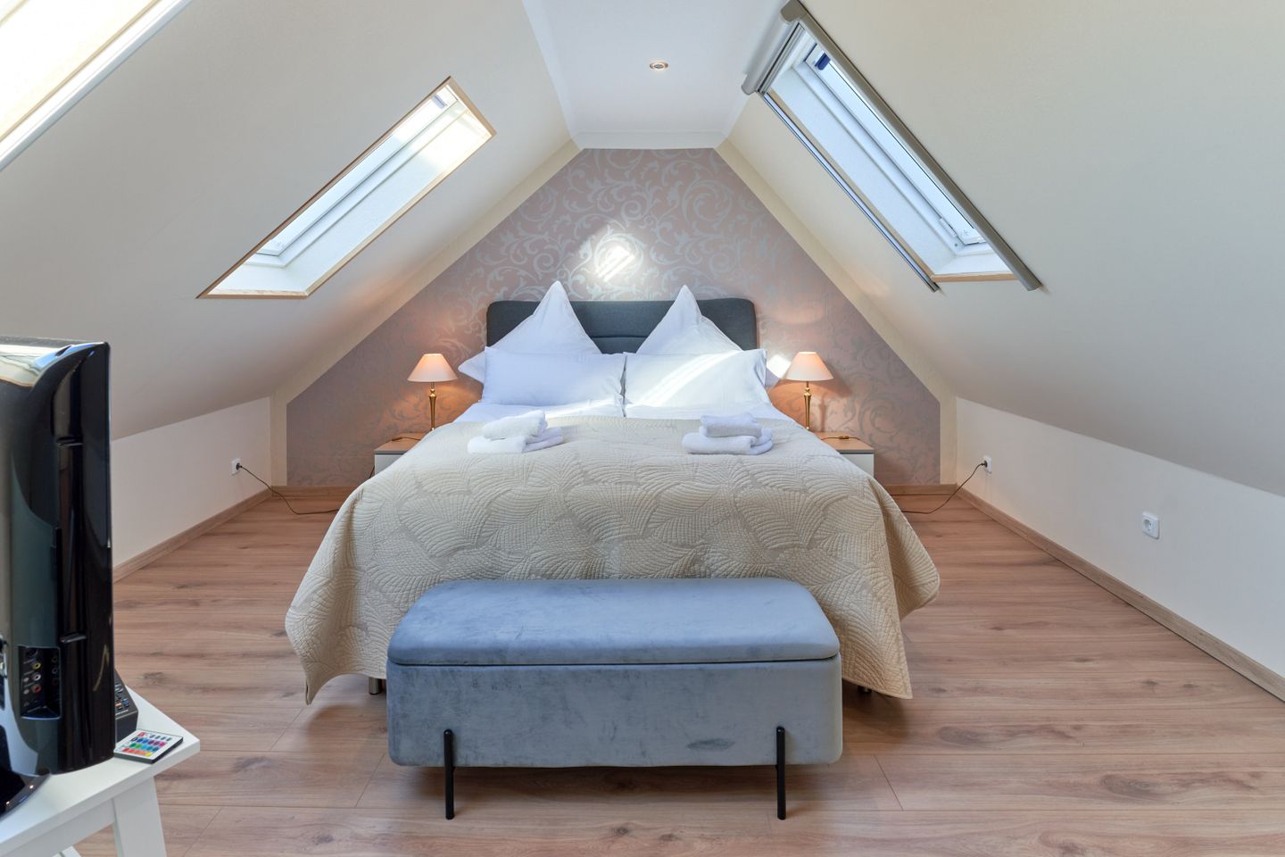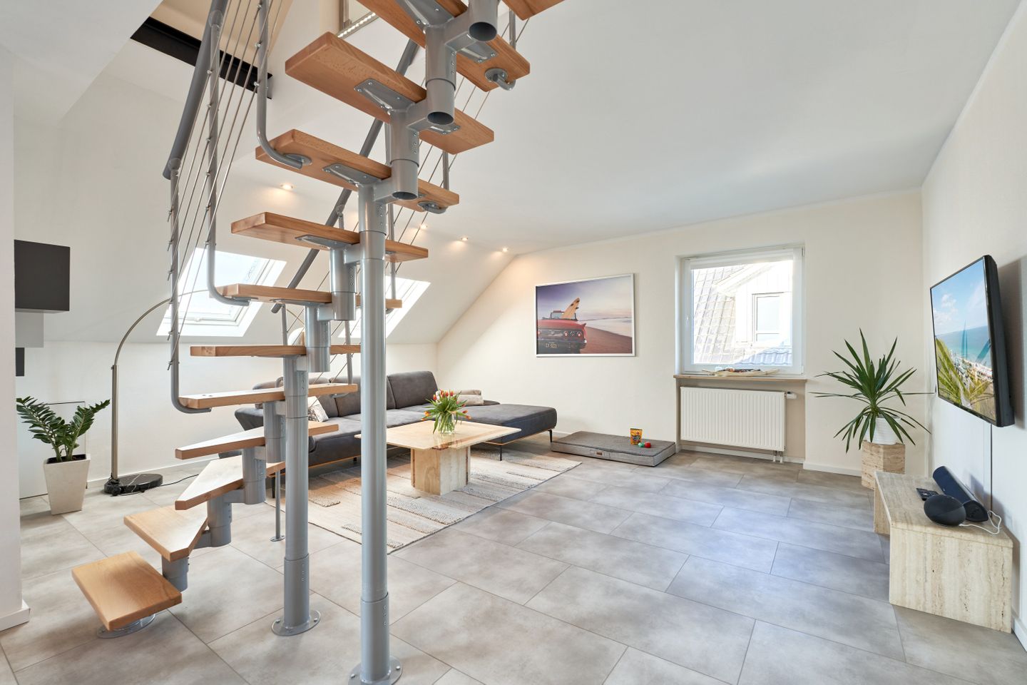 Die Wohnung erstreckt sich über 95 qm und 2 Ebenen, Luxus Küche, offener Wohn-Essbereich, ein modernes Badezimmer mit großer Dusche und Badewanne verwöhnen den Gast, ebenso wie das Schlafzimmer im Dachgeschoß. Ein gemütliches neues Polsterbett sorgt garantiert für erholsamen Schlaf. Der Wohnbereich ist mit einem großen Smart-TV und einer Bluetooth Musikanlage ausgestattet.