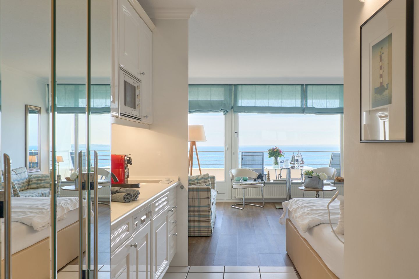 Die Apartments befinden sich in den oberen Etagen dieser Hotel- und Apartmentanlage. Unsere Gäste werden entweder mit einem traumhaften Meerblick oder einem idyllischen Waldblick und einer atemberaubenden Fernsicht belohnt. Die Ausstattungen der Apartments reichen von modern bis hin zu gemütlich-maritim, sodass jeder Gast etwas Passendes für sich findet.