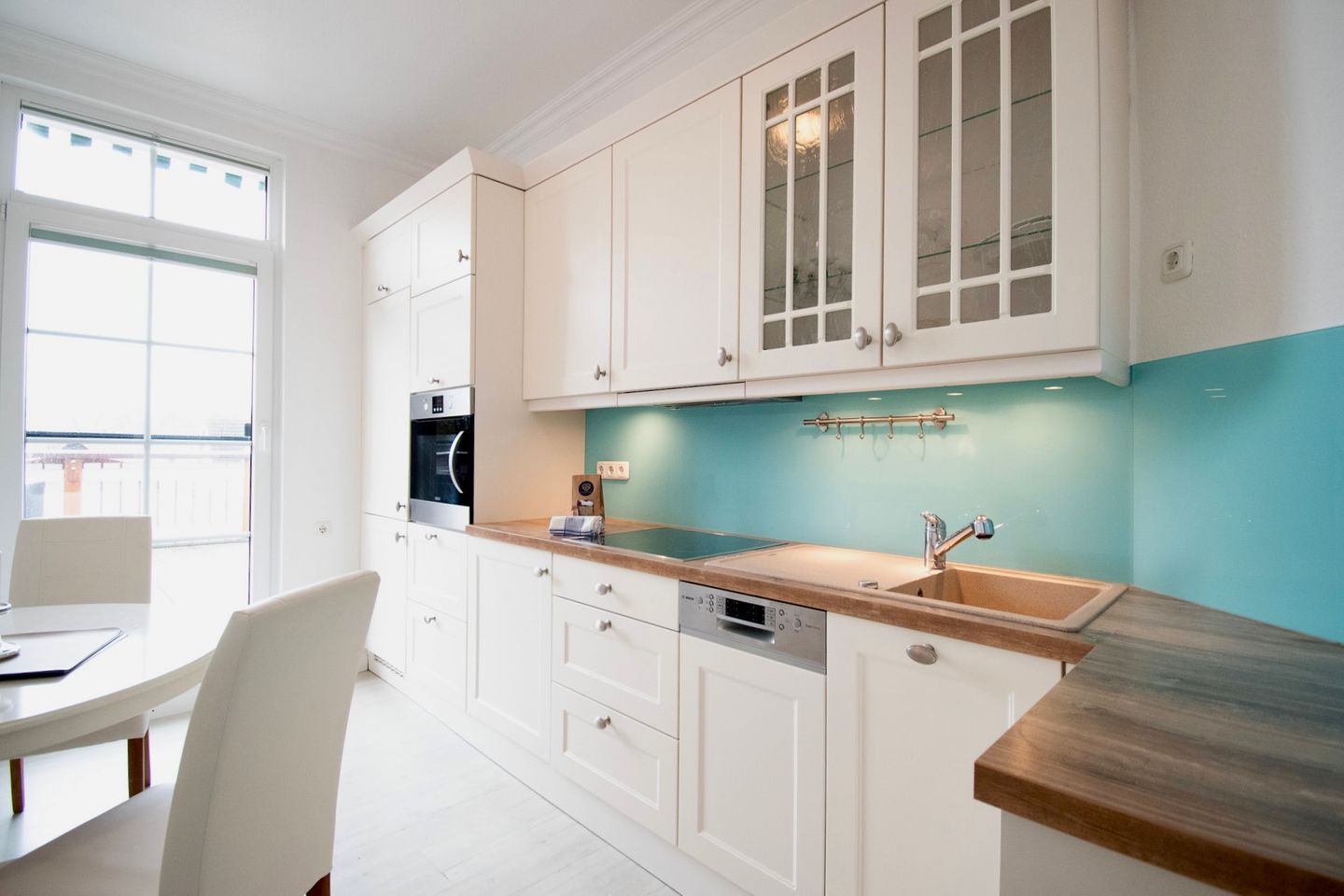 Die Küche ist hell und einladend gestaltet und bietet moderne Geräte sowie ausreichend Platz zum Kochen und Zubereiten von Mahlzeiten. Verwöhnen Sie sich und Ihre Liebsten mit köstlichen Speisen und genießen Sie gemeinsame Mahlzeiten in Ihrem eigenen gemütlichen Rückzugsort.