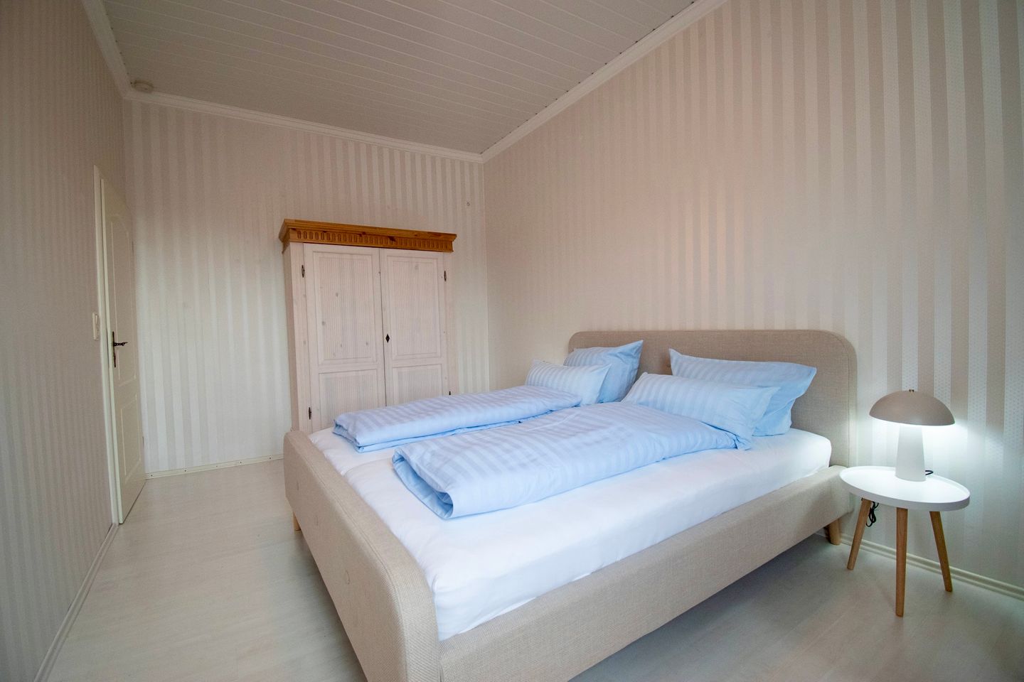 Das Schlafzimmer ist mit einem modernen Polsterbett ausgestattet, das mit hochwertigen Geltexmatratzen für Ihren optimalen Komfort sorgt. Hier können Sie sich nach einem ereignisreichen Tag entspannen und zur Ruhe kommen, während Sie von Ihrem nächsten Abenteuer träumen.